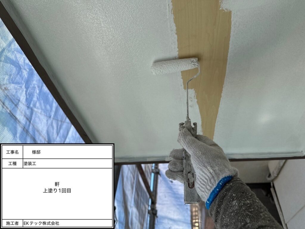 軒天や屋根の塗装、鉄部の塗装も行いました。