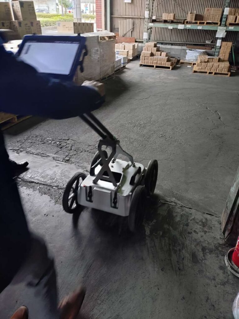 超音波機械を床に滑られながら、コンクリート下の状況を把握していきました。