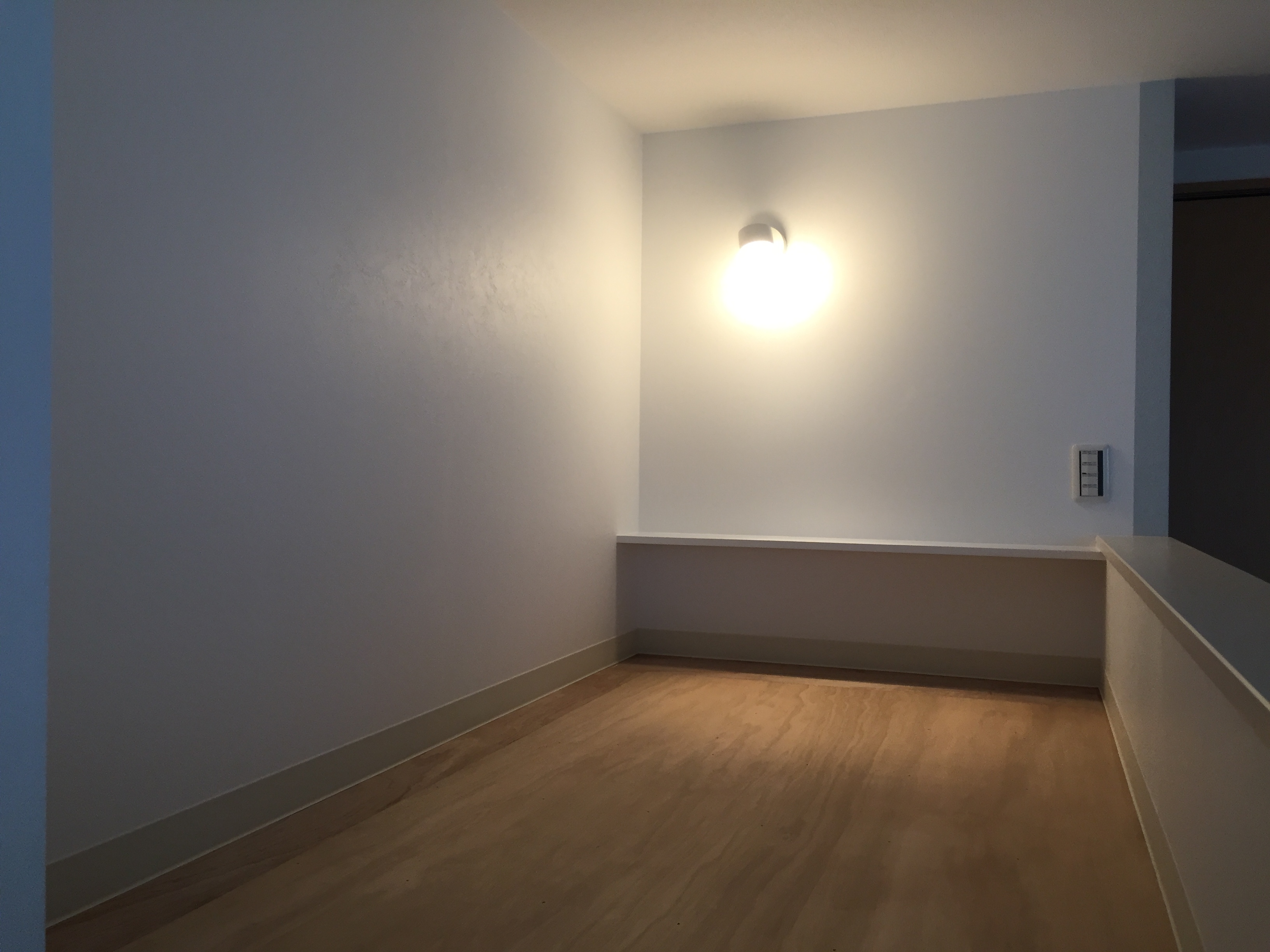 壁の中に配線を仕込んで、ベッドの枕元灯を取り付けます♪
