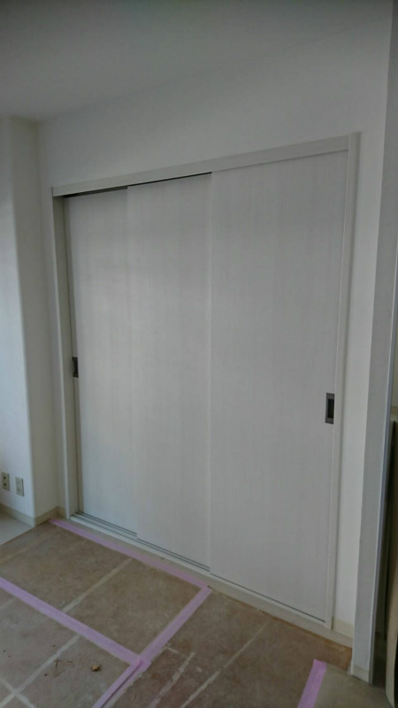 3枚扉の引き戸へリフォームしました。ドアの材質や仕様を変えるだけでこんなに印象が違います。