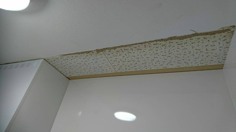 キッチンの天井です。吊戸を撤去した後の見えてきた部分です。この部分をクロス補修していきます。