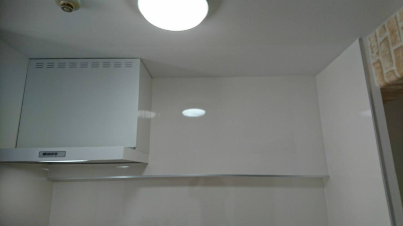 ③ まず壁にキッチンパネルを貼ってから新しい換気扇が設置します。